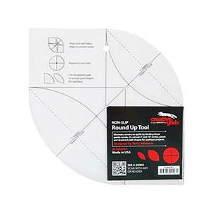 Use the Creative Grids® Round Up tool for rounding corners on placemats, table runners and quilts. Gentle curves in two sizes are easy to bind – no need to stop and turn at each corner!